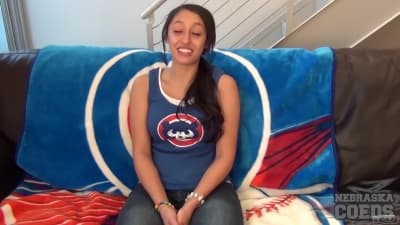 Questa giovane ragazza mora latina con delle tette piccole si vuole masturbare su un divano con eccitazione