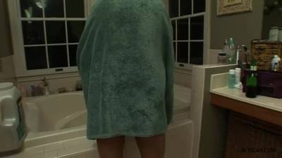 Questa bella bionda è così felice di toccarsi e scoparsi con un dildo che la riempie del massimo piacere! Guardala in bagno!